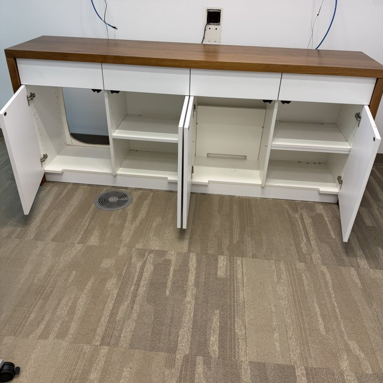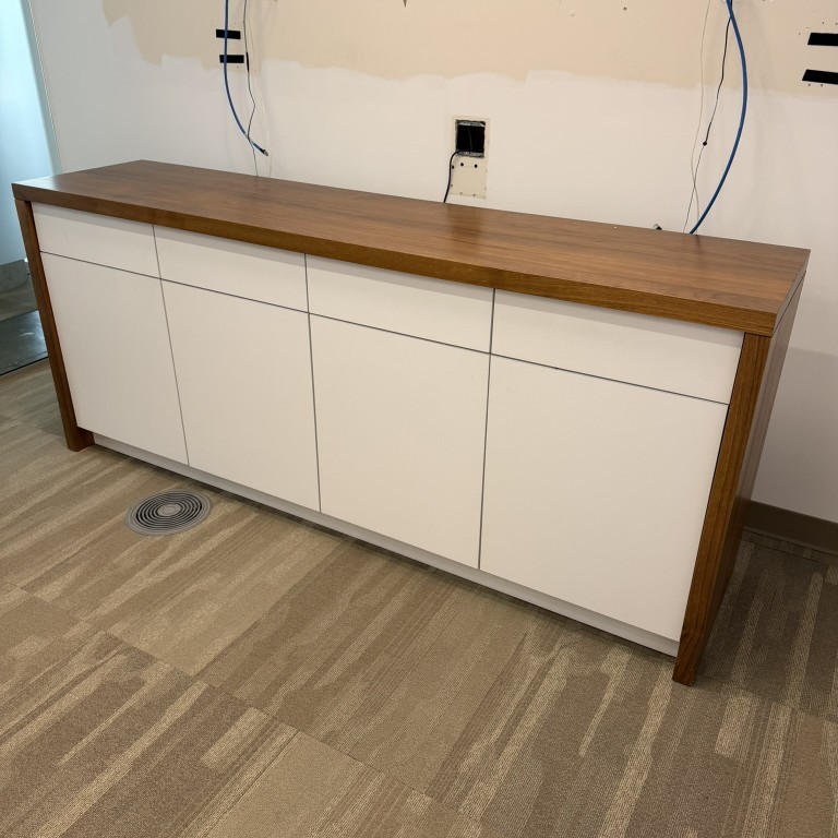 Credenza, Cherry Top and Sides, White Doors and Drawers. 20″D x 84″W x 36″H
