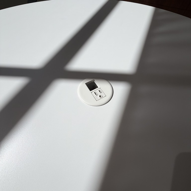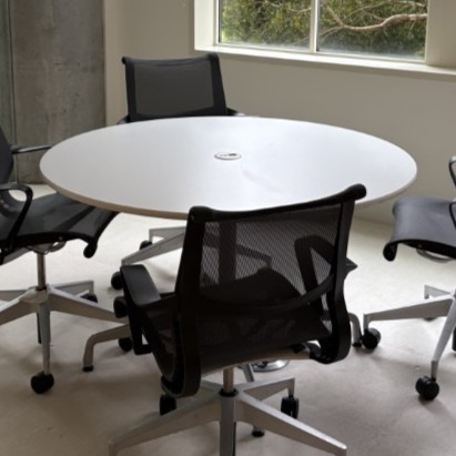 Herman Miller Eames Table, Round, White Top and Silver Base, 48″ Diameter with Power
