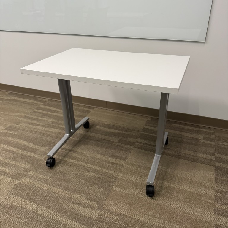 Herman Miller Everywhere Table, 24″D x 36″W, Flip Top, White Top and Silver Base