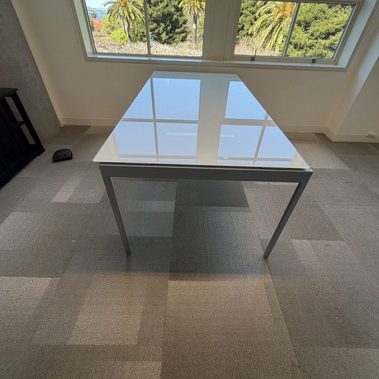 Koll Antenna Table Desk – Glass Top, Silver Legs, 36D x 72W x 29″H