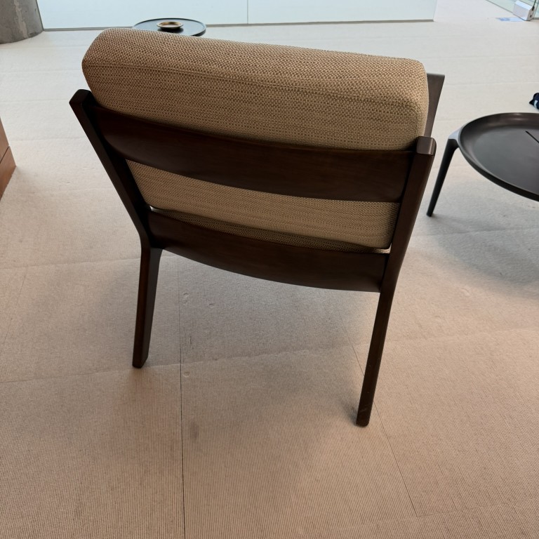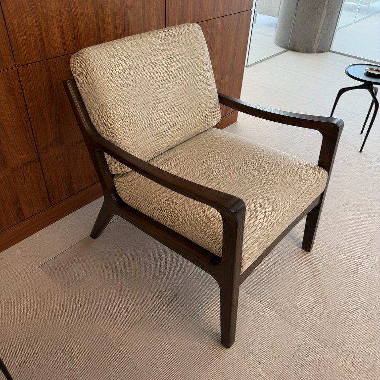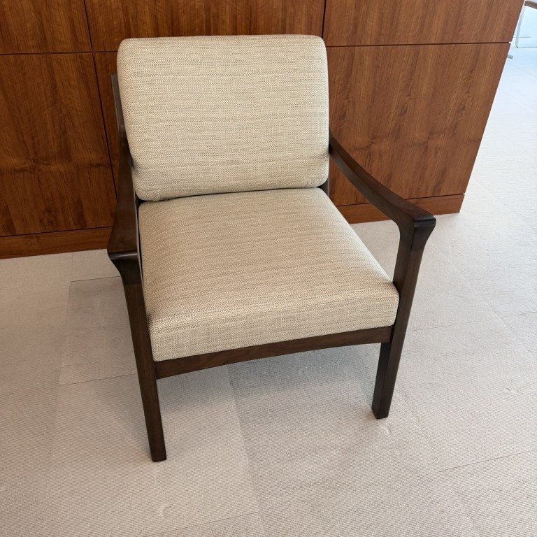 Lounge Chair, Beige Fabric with Dark Wood Frame, 30.75W x 33D x 36H, Holly Hunt MFG
