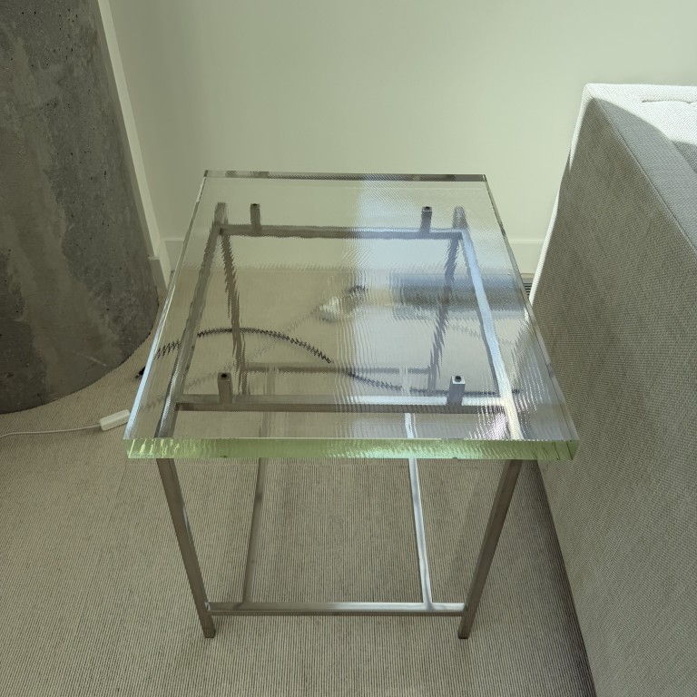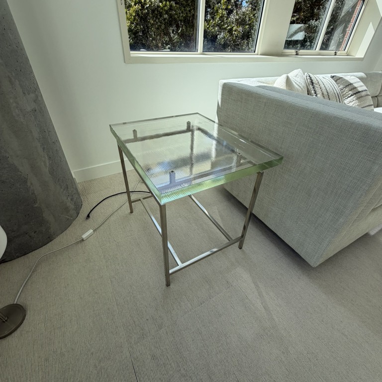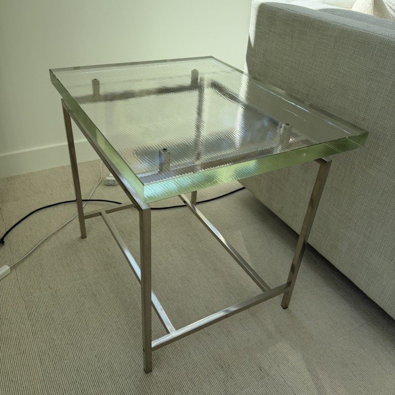 Side Table, 19.5W x 24D x 22H, Glass Top and Chrome Base
